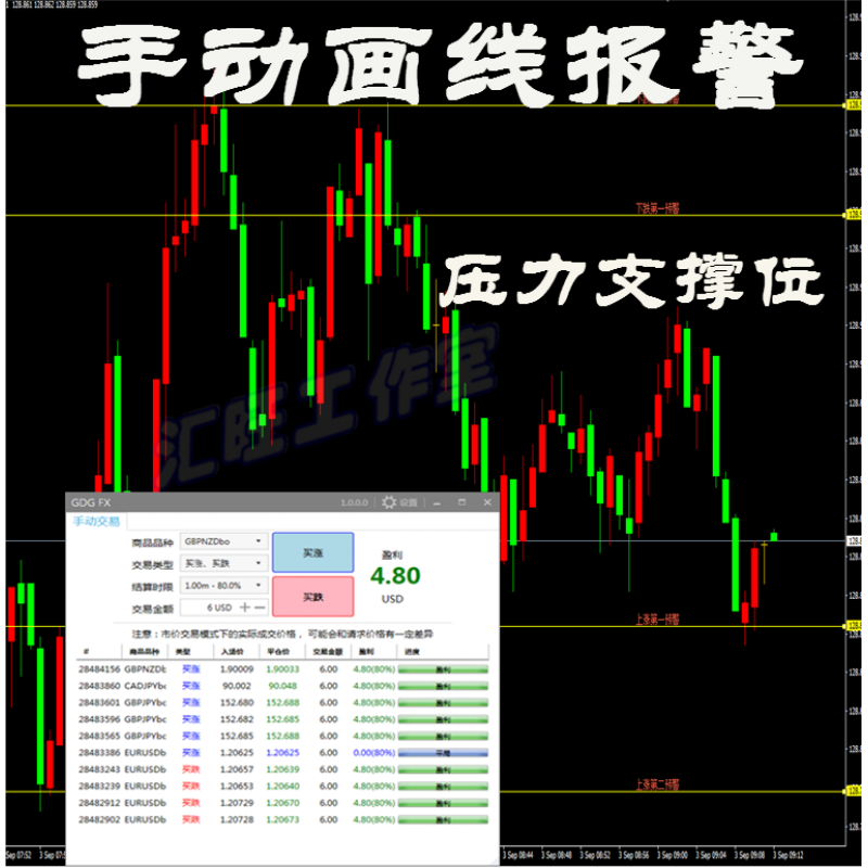 外汇黄金原油技术/指/标EA二元交易横盘划线报警MT4分析系统模板
