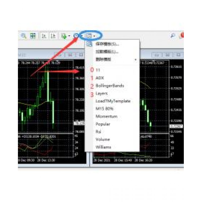 一次性将所有图表修改为指定模版,需要提前将图表(已经加载好指标EA以及参数)设定好,然后点击蓝色椭圆里的模版按钮,再保存模版,比如我保存的模版叫“11”