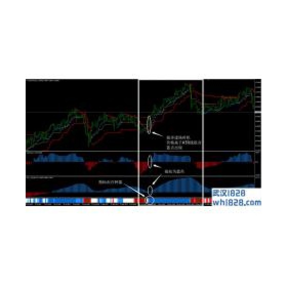 2.做空时机: 出现红点,价格在ATR线组合(黄线和红线)下方,趋势强度指标(Histobands和CCI_T3)都为红色,且小于零线水平。通过以上情况判断趋势走向。