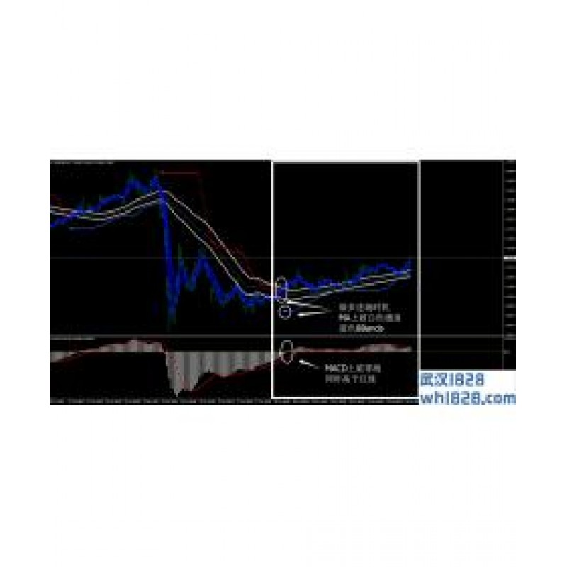 2.做空时机:当价格上方的BBands变成红色,蓝色移动平均线(MA)下破两条白色线(白色通道),MACD(指数平滑异同平均线)下破零线并且低于红线。