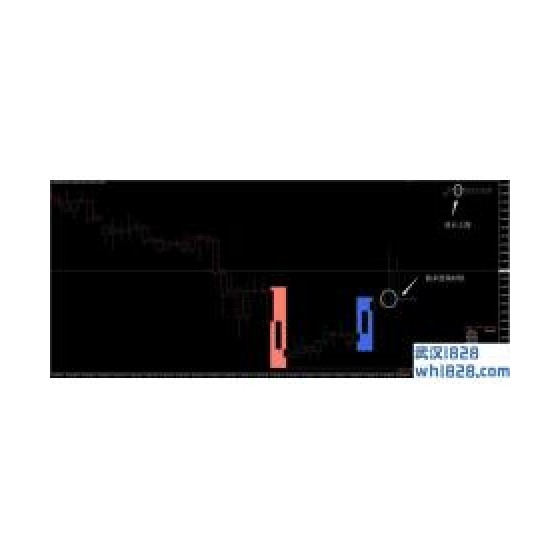 2. 做空时机:趋势方向指标对应时间为红色;K线低于买卖水平信号指标红色卖出虚线(Sell)。