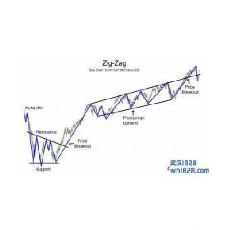 ZigZag指标会形成摆动高点和摆动低点: 摆动高点:当K线价格(通常是关闭),同时高于之前的K线价格和之后的K线价格 摆动高点:当K线价格(通常是关闭),同时低于之前的K线价格和之后的K线价格 ZigZag指标的使用: 该指标不能单独构成一个外汇交易策略,它最常用与斐波那契或艾略特波浪交易系统。交易员喜爱使用该指标的原因是它帮助他们分析回档位。但是不管你使用什么交易策略,记住曲折指标是一个滞后指标,它不能实现预测,而外汇市场的节奏非常快,所以尽量去补充交易系统,提供领先的信号。 ZigZag指标和技术形态的组合使用: 下方案例就是通过Zig-Zag指标和支撑位、阻力位,以及通道的组合来判断价格的突破行情。下方案例就是通过ZigZag指标来绘制头肩形技术形态,这个比直接来画技术图形更具有准确性。而头肩形的突破也显示了趋势的反转。ZigZag指标的构造原理下载