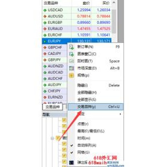 1、在你的MT4交易平台上,在交易品种那里,鼠标右键,然后选择“交易品种”